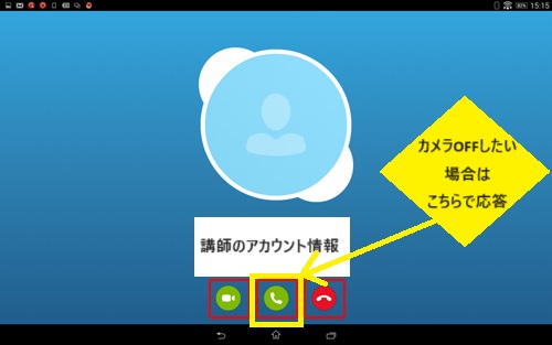 ビデオ応答ではなく、中央の「音声通話」を押してレッスンに参加しましょう。