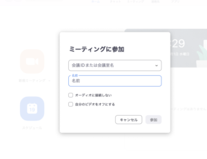 「自分のビデオをオフにする」を選択してレッスンに参加できます。