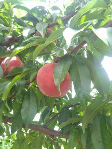 桃は、日当たりが良い実や、木の高いところについている実が甘いんですよ、